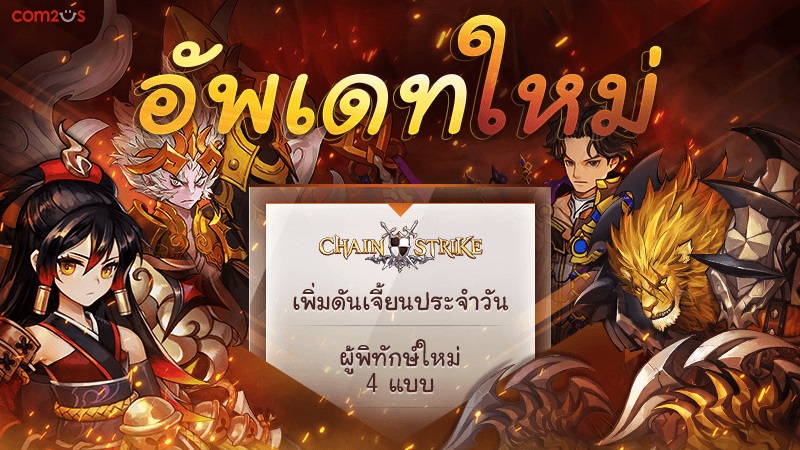 ตั้งแต่เปิดให้บริการในเดือนมีนาคม Chain Strike” เกม RPG Turn-based แนวใหม่จากค่าย Com2uS ก็ได้รับเสียงตอบรับจากผู้เล่นอย่างล้นหลาม แถมยังขนเอาฟีเจอร์ใหม่ๆ มาเสริมเกมอย่างต่อเนื่อง ทั้งการต่อสู้ซ้ำอัตโนมัติ อัปเกรดรางวัลการต่อสู้เลื่อนขั้น ตัวละครใหม่ สกิล จนถึงดันเจี้ยนใหม่ที่ดรอปอุปกรณ์ระดับสูง ฯลฯ และในตอนนี้ ได้เวลาปล่อยอัปเดตใหม่ที่จะมาสร้างสีสันให้แฟนๆ เกม Chain Strike กันอีกครั้งแล้ว!