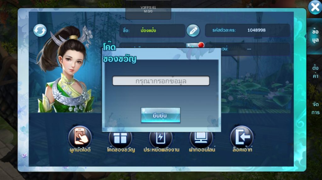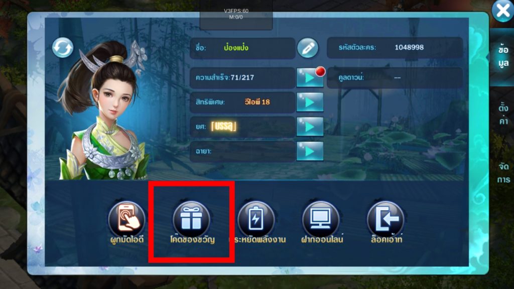 2.กดเลือกเมนู > โค้ดของขวัญ