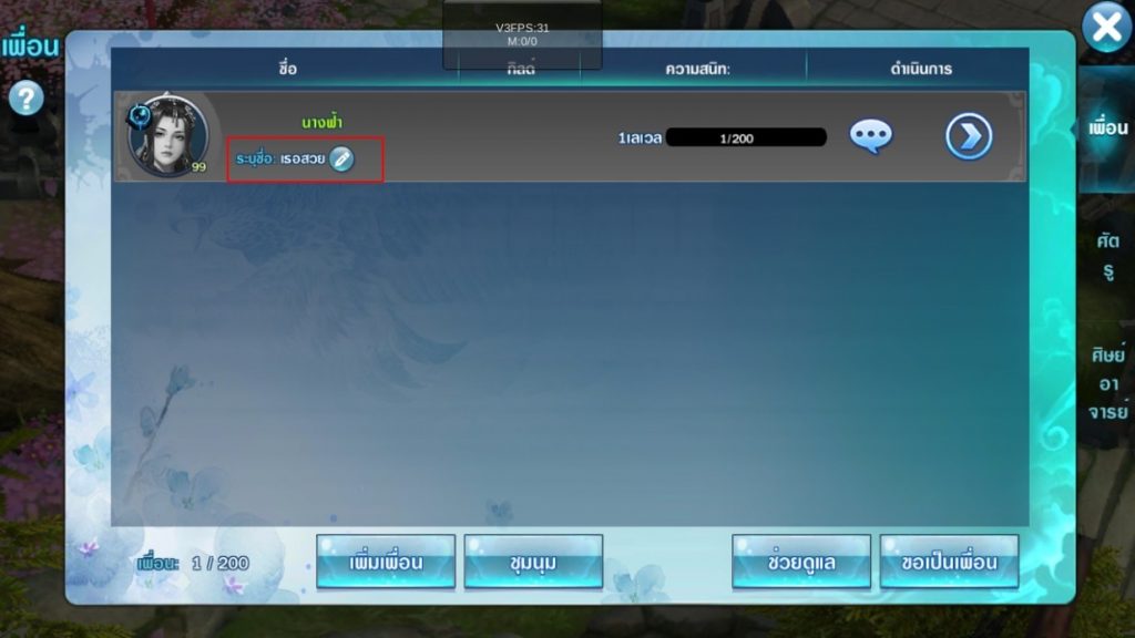 เป็นฟังก์ชั่นที่เราสามารถใส่ชื่อเล่น หรือชื่อเรียกของเพื่อน เวลาเพื่อนเปลี่ยนชื่อตัวละคร ชื่อที่เราระบุไว้อยู่ก็ยังไม่หาย