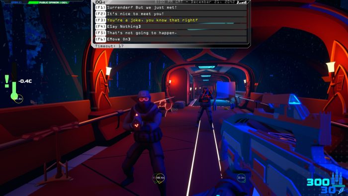 ที่สำคัญ เริ่มต้นตัวละครของเราจะได้อยู่ในทีมหนึ่ง เพื่อทำงานร่วมกับเพื่อนๆ (AI) ในทีมของเรา แต่อย่างที่ผมบอก ตัวเกมค่อนข้างมีความยืดหยุ่นมาก ทำให้เราสามารถละทิ้งทีม แล้วออกไปฉายเดี่ยว หรือเข้าร่วมกับทีมฝั่งตรงข้ามก็ยังได้ครับ
