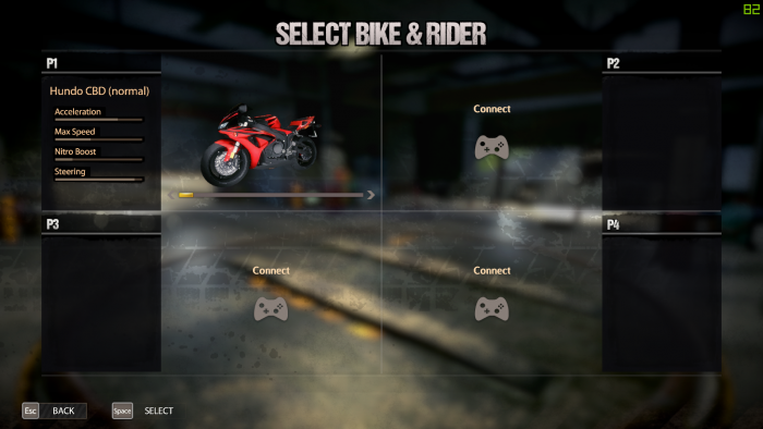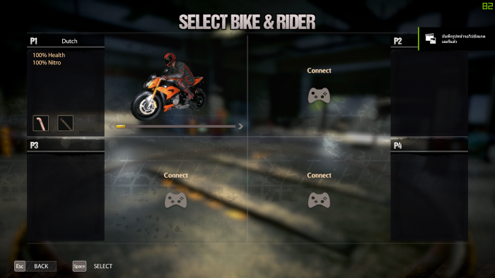 ก่อนที่จะเข้าสู่หน้าเลือกรถและตัวละคร มันจะมีให้เราเลือกก่อนว่า จะเล่นเกมด้วยอุปกรณ์ใดบ้าง ตรงนี้ผมไม่ได้แคปภาพไว้ เนื่องจากว่าถ้ากดปุ่มใดๆ ไป เกมจะถือว่าเราเลือกเล่นโดยใช้ใช้เมส์และคีย์บอร์ด แล้วมันจะเปลี่ยนถ้ามาที่การเลือกรถและตัวละครทันที ดังนั้น ให้เลือกให้ดี ถ้าจะเล่นกับเพื่อนอย่าลืมให้เพื่อนกดปุ่มบนจอยด้วยนะครับ