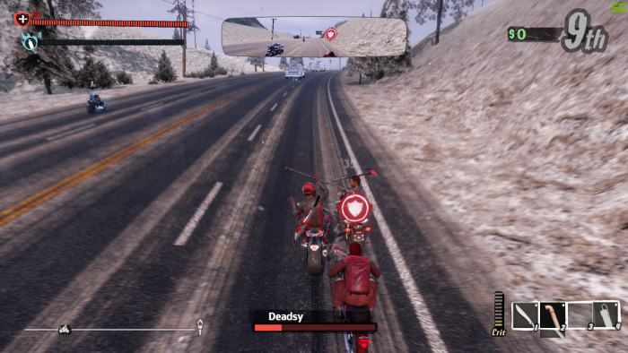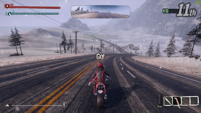 ต้องระวังอย่าให้โดนฟาดหรือตกเขาบ่อยๆ นะครับ การขี่รถตกเขาหลายรอบจนชีวิตหมด หรือโดนคู่แข่งฟาดหัวจนตาย จะทำให้เกมรอบนั้นจบลงทันที ไม่ว่าเราจะเข้าเส้นชัยหรือไม่