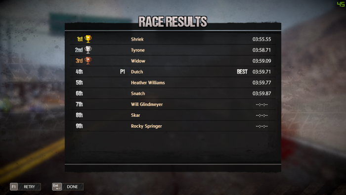 สำหรับผมเกมถือว่าทำระบบฟิสิกส์ออกมาได้ค่อนข้างดีนะครับ การควบคุมทำได้ง่าย การหมุนกล้อง บังคับรถทำได้อย่างเนี้ยบ แต่มีข้อติอยู่ในเรื่องของแคมเปญ มันจะแบ่งเป็นด่านๆ ในแต่ละด่านก็จะมีสนามย่อยๆ ลงไป ถ้าเราเล่นสนามไหนในด่านนั้นแพ้ เราจะต้องเริ่มด่านนั้นใหม่ทั้งหมด ผมว่าไม่ค่อยโอเคเท่าไร เพราะถ้าเกิดเราไปตายตอนสนามสุดท้าย ทุกอย่างที่เราทำมาคือเริ่มใหม่หมดเลยนะ T T
