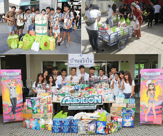 นอกจากการบริจาคสิ่งของแล้ว ยังมีเลี้ยงอาหารกลางวันน้องๆ และทำกิจกรรมร่วมกัน ไม่ว่าจะเป็นระบายสีตัวละครเกมออดิชั่น, โชว์สีลาแดนซ์กระจาย “Audition แดนซ์ สิ จ๊ะ”