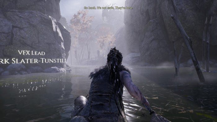 การดำเนินเรื่องตั้งแต่ช่วงเริ่มเกมนี้ (และน่าจะเป็นเกือบตลอดทั้งเรื่อง) ทำออกมาได้ค่อนข้างแปลกใหม่เลยทีเดียว โดยจะมีเสียงบรรยายของผู้หญิงคนหนึ่งดังขึ้นมา เหมือนเป็นการเล่าตำนานของเคลติกให้ลูกๆ ของเธอฟัง ซึ่งเนื้อเรื่องก็จะสัมพันธ์กับตัวเกมอยู่ตลอดเวลาครับ นอกจากนี้เราอาจจะได้ยินเสียงเด็กหัวเราะคิกคัก หรือส่งแรงเชียร์มาให้ Senua ในระหว่างการผจญภัยด้วย