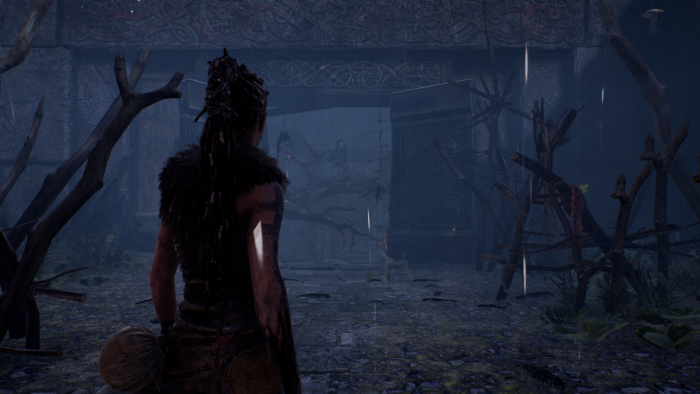ในส่วนเนื้อเรื่องนี้ผมจะไม่ขอกล่าวอะไรเยอะมาก อย่างหนึ่งคือเพื่อป้องกันการสปอยล์ อย่างที่สองคือผมยังเล่นเกมนี้ไม่จบ…. แต่ไม่เป็นไร เราเล่นมาบ้างก็พอรู้เรื่องราวอยู่ เริ่มต้นที่ Senua ได้เดินทางมายังเขตเมืองที่เป็นทางผ่านสู่ขุมนรก โดยเธอมีจุดมุ่งหมายที่จะนำดวงวิญญาณของชายที่รักกลับคืนมา และปลดปล่อยดวงวิญญาณให้เป็นอิสระ และการที่จะเข้าสู่ประตูยมโลกได้นั้น จะต้องผ่านผู้คุมประตูทั้งสาม ตรงนี้ ผมก็จำไม่ได้และว่ามีอะไรบ้าง เพราะมันจะมีเล่าให้ฟังตั้งแต่ต้นเกม แต่ประตูที่ผมเข้าไปแล้วคือ ปิศาจแห่งภาพลวงตา